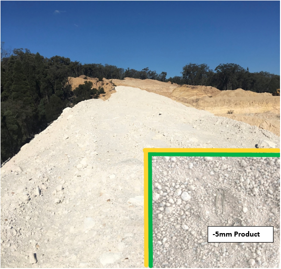 Stockpile of White Sandy Clay. Inset of Screened Product