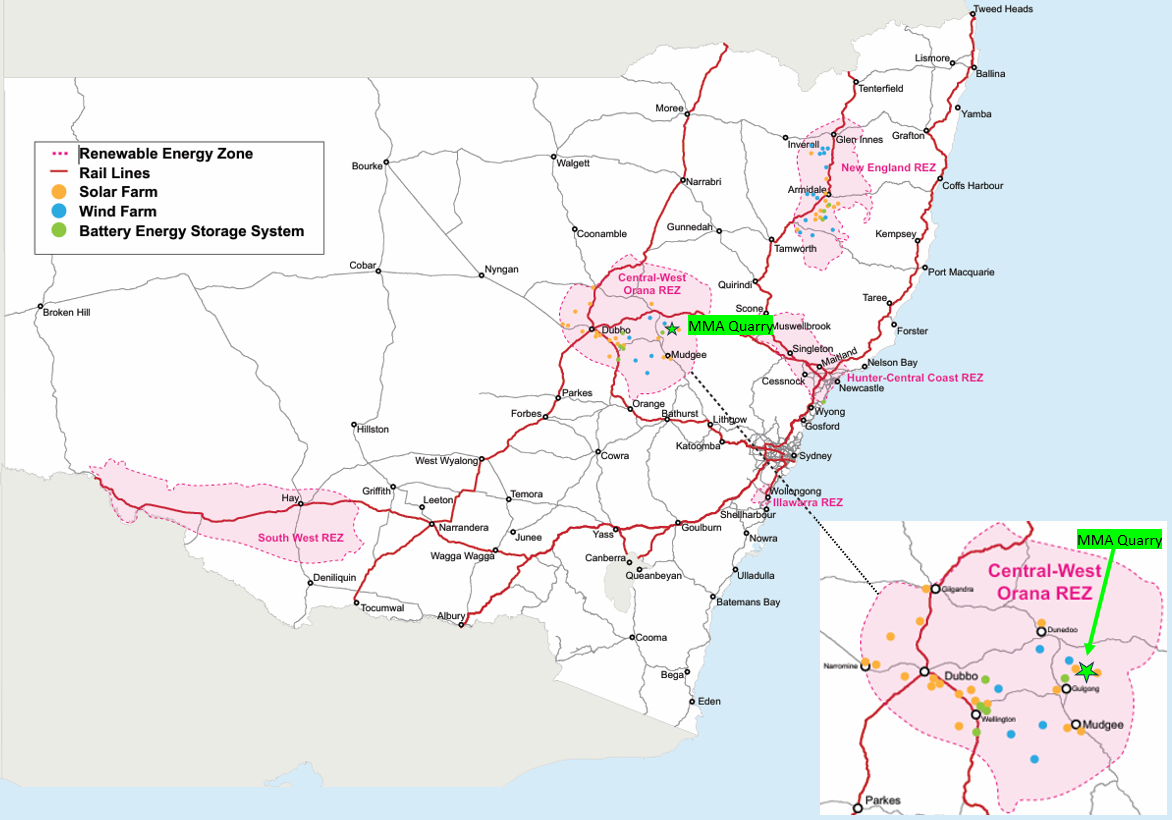 It is located centrally in the Central-West Orana Renewable Energy Zone (REZ), a region in New South Wales that will generate large amounts of renewable energy. It’s the first REZ in the State and centre for solar and wind farm development in Australia.